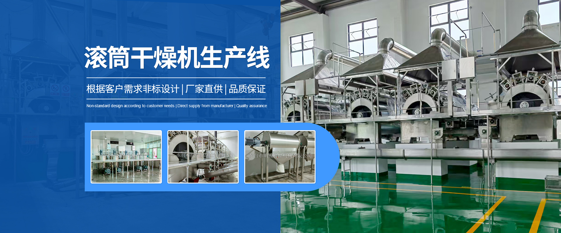 東臺市明銳食品機械有限公司是一個從事食品機械設(shè)備設(shè)計、制造和安裝調(diào)試的專業(yè)廠家,在食品生產(chǎn)工藝、生產(chǎn)流程及設(shè)備設(shè)計和制造有著多年豐富經(jīng)驗。主要產(chǎn)品有蛋卷機生產(chǎn)系列,滾筒干燥機生產(chǎn)線系列以及其他食品機械。目前各種生產(chǎn)線規(guī)格齊全,國內(nèi)技術(shù)優(yōu)良,產(chǎn)品遠銷亞洲各國及國內(nèi)二十多個省市自治區(qū)。